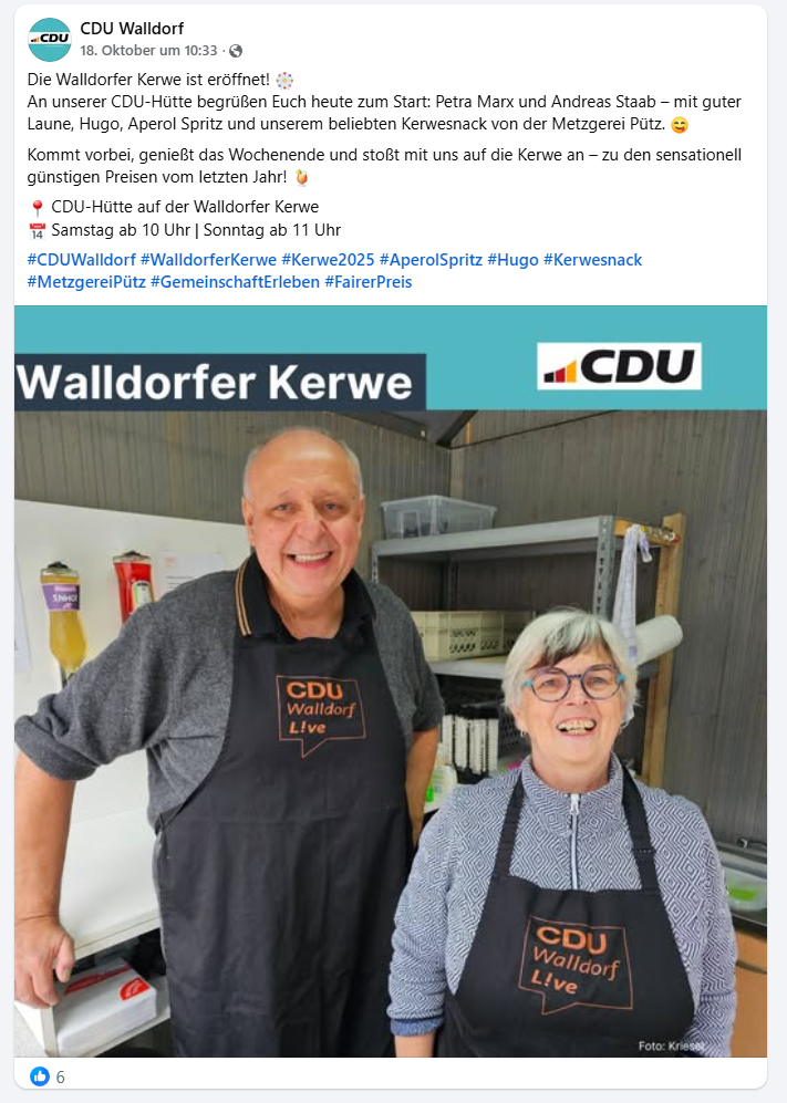 Am Wochenende ist es wieder so weit: Die Walldorfer Kerwe öffnet ihre Pforten – und natürlich ist die CDU Walldorf auch in diesem Jahr mit ihrer beliebten Hütte dabei.