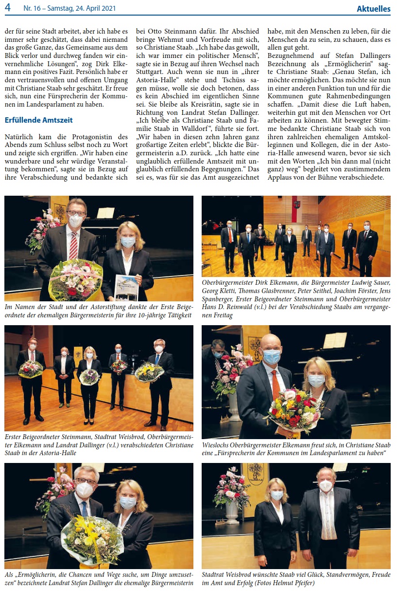 Artikel in der Walldorfer Rundschau Nr. 16 / 2021 Seite 3.