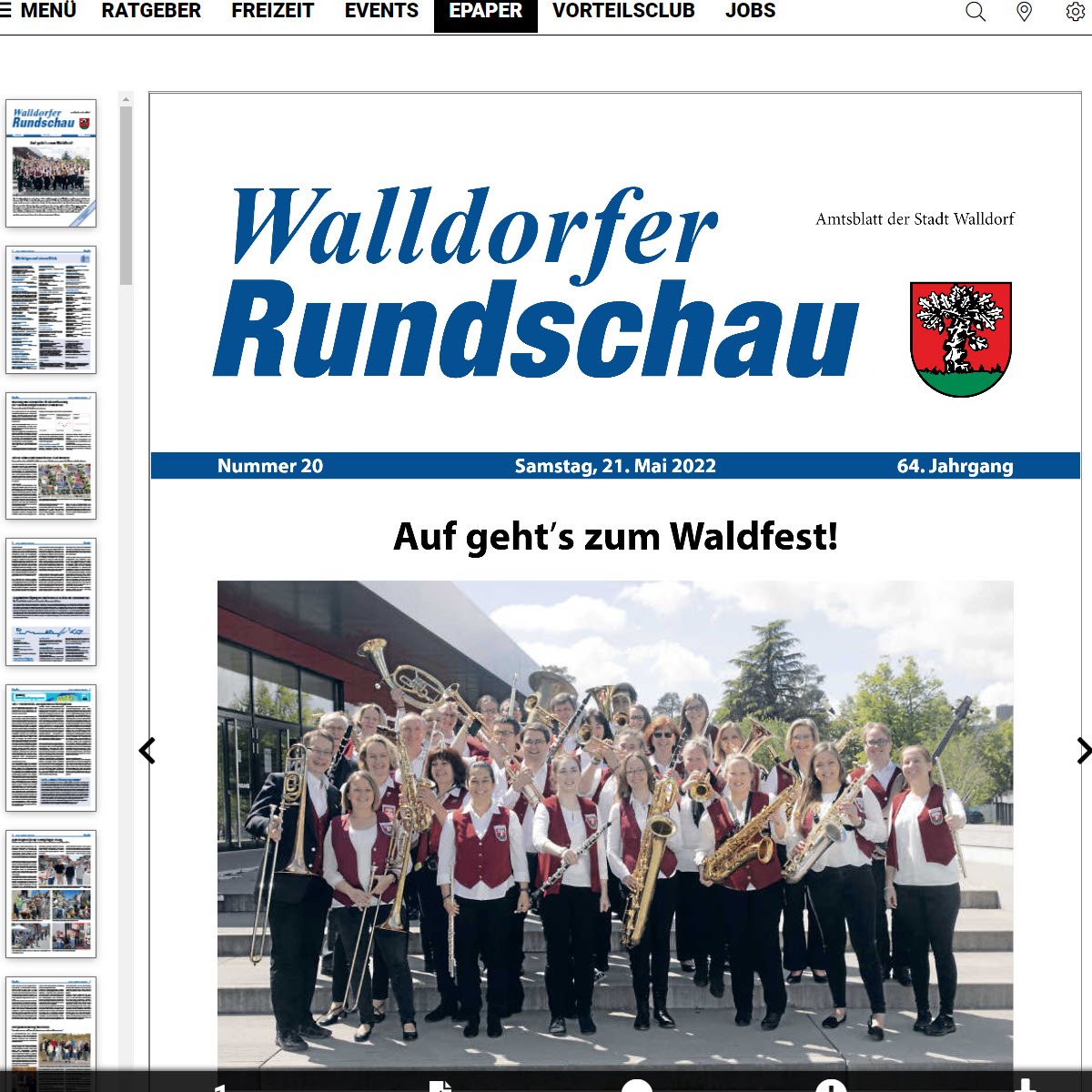 Die Walldorfer Rundschau 2022 Nr. 20 als E-Paper | Bildschirmabgriff: Dr. Clemens Kriesel